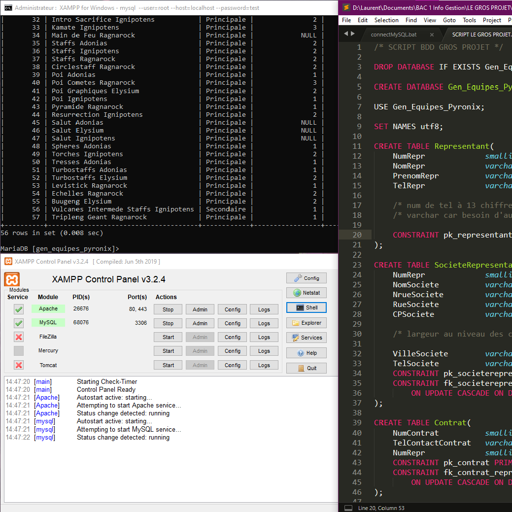 Xampp, MySQL et MariaDB sont 3 applications que j'ai utilisées lors de ma formation, dans le cadre